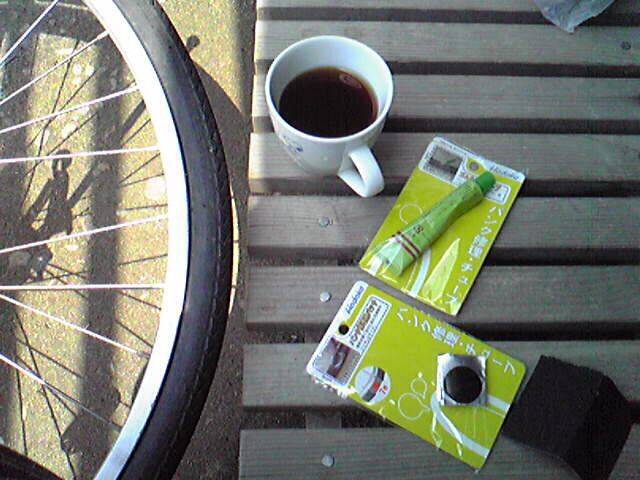 11時位まで布団の中で携帯いじくって、その後パンク直した。